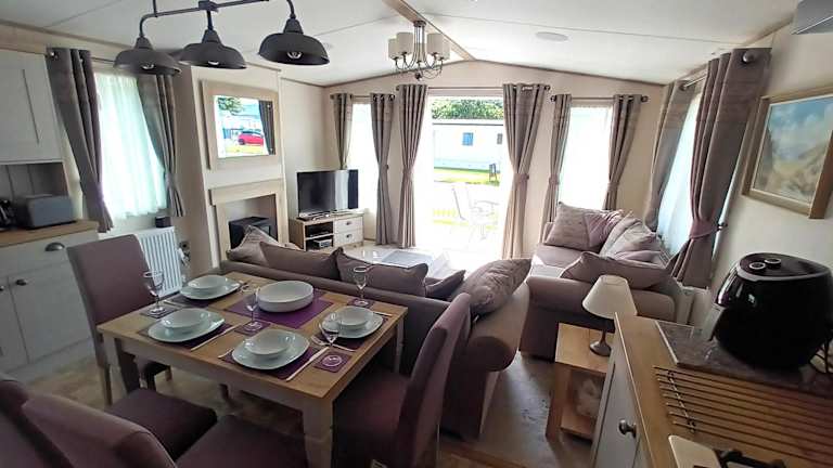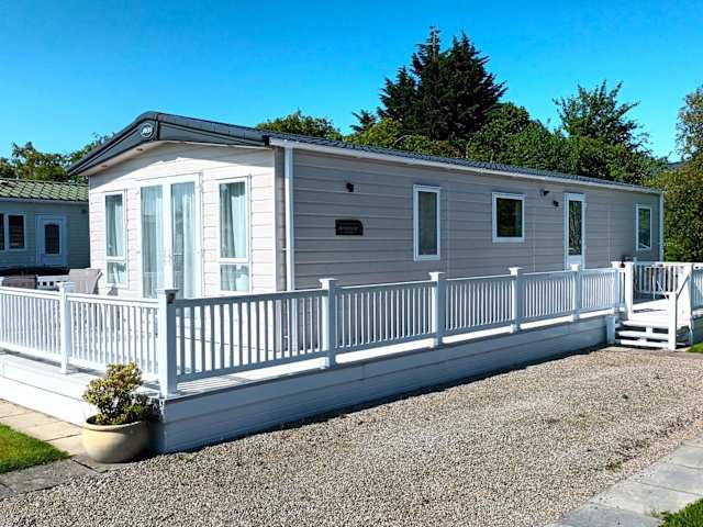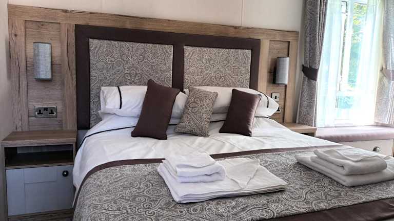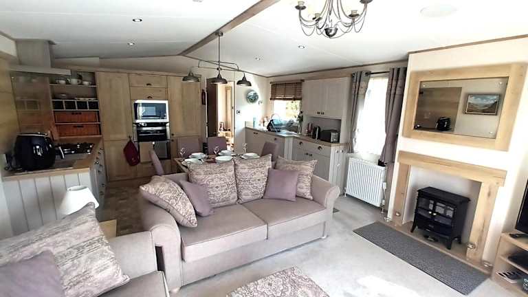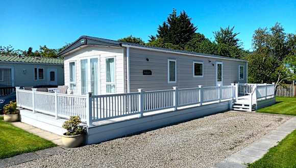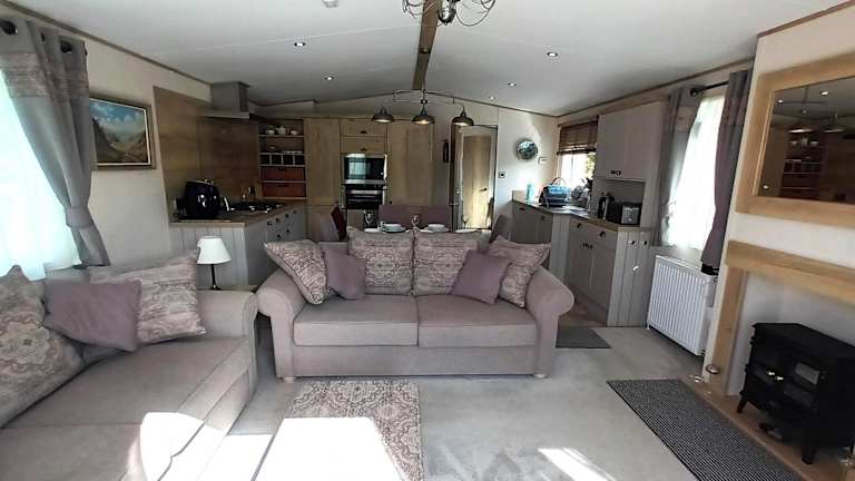 Die Binka - Luxury 40 x 14ft Lodge bietet eine komfortable Unterkunft mit einer Terrasse und atemberaubendem Bergblick. Die Lodge ist ideal für einen entspannenden Aufenthalt und verfügt über eine Vielzahl von Annehmlichkeiten für die Gäste.