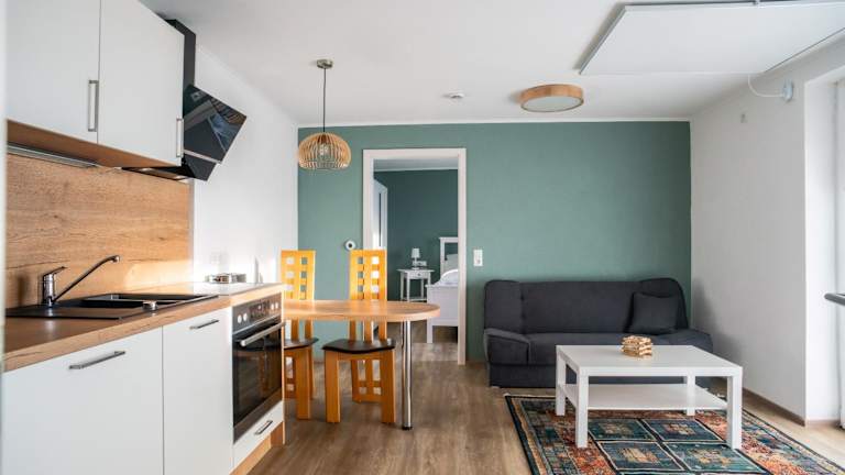 Die Zimmer sind mit einem Flachbild-TV sowie einem eigenen Badezimmer ausgestattet. Zur Ausstattung gehören eine Küchenzeile mit Kühlschrank, Geschirrspüler, Ofen, Herdplatte, Toaster, Kaffeemaschine und Wasserkocher. Ein Haartrockner ist ebenfalls vorhanden.