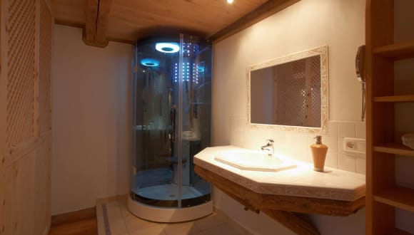 Der Troatkostn (Getreidespeicher) beim Fritzn wurde 1726 erbaut. Mit viel Liebe zum Detail ist es gelungen ihn zu einem modernen Wohnobjekt umzugestalten und alte Bausubstanz mit den Vornehmlichkeiten heutiger Ansprüche zu kombinieren und zu erhalten. Druch die Kombination von Steinmauerwerk, Naturlehmputz und Niedertemperaturheizung entsteht ein äusserst angenehmes Wohnklima. Die Einrichtung wurde zum grössten Teil wieder unter Verwendung von Altholz hergestellt. Durch Anschluss eines Wintergartens und einer Giebelverglasung samt Glasboden wurden auch moderne Bauelemente verwendet. Das Holz unserer gemütlich eingerichteten Komfortzimmer wurde nach alter Überlieferung geschlägert, getrocknet, mehrjährig gelagert und von einem Handwerker mit viel Gefühl für Details verarbeitet. Beim Betreten des hellen Lärchenzimmers spürt man bereits Geborgenheit und der Duft des Holzes stimuliert die Sinne. Das eher dunkle Altholzzimmer strahlt eine harmonische Verbindung zwischen Stärke und Wärme aus.