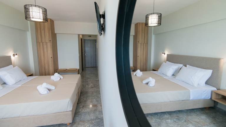 Die Studios im Birais Beach sind hell und komfortabel eingerichtet. Jedes Studio verfügt über einen möblierten Balkon, von dem aus Sie einen herrlichen Blick auf das Kretische Meer und den Garten genießen können. Zur Ausstattung gehören eine Klimaanlage, ein TV und eine praktische Küchenzeile mit einem Minikühlschrank. Ein Safe und kostenfreie Pflegeprodukte stehen Ihnen ebenfalls zur Verfügung.