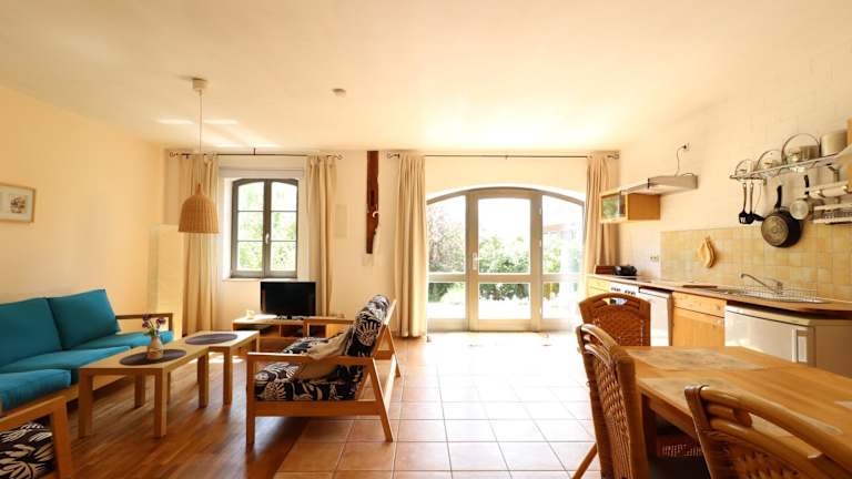 Die Wohneinheiten sind mit Parkettböden ausgestattet und bieten eine voll ausgestattete Küche. Neben einem Kühlschrank verfügt jede Einheit über einen Flachbild-TV mit Satellitenkanälen, ein eigenes Badezimmer mit Dusche und Haartrockner.
