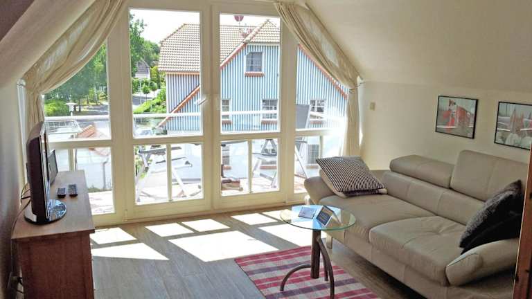 Die Unterkunft befindet sich in Zingst, etwa 400 Meter vom Strand entfernt. Die Umgebung bietet Sehenswürdigkeiten wie den Stralsunder Hafen und das alte Rathaus, beide in einer Entfernung von etwa 44 bis 45 km. Der nächstgelegene Flughafen ist Rostock-Laage, rund 94 km entfernt.