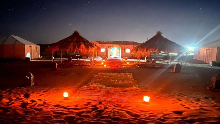 Das Bivouac Draa befindet sich in der Wüste, nur 7 km von Zagora entfernt. Die ruhige und abgeschiedene Lage bietet Ihnen die Möglichkeit, die Schönheit der Wüstenlandschaft zu erkunden und die Stille und Weite der Natur zu genießen. Von den Zelten aus haben Sie einen herrlichen Blick auf die Sanddünen und können die einzigartige Atmosphäre der Wüste erleben.