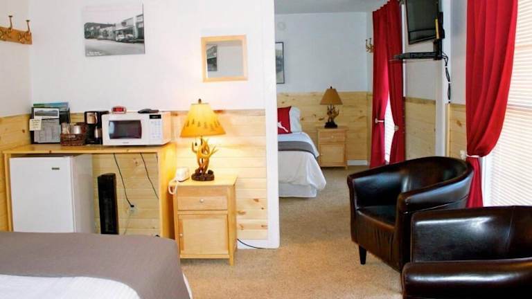 Das Black Elk Resort in Hill City ist eine ideale Unterkunft für einen entspannten und komfortablen Aufenthalt. Das Resort bietet zahlreiche Annehmlichkeiten wie einen Taproom, eine Gemeinschaftslounge und einen Garten. Familienzimmer und ein Kinderspielplatz machen es auch für Familien attraktiv. Die Zimmer sind gemütlich eingerichtet und verfügen über eine Terrasse mit Blick auf den Garten. Das Resort bietet außerdem kostenfreies WLAN und einen Grillbereich. Die Lage des Resorts ist ideal, um die umliegenden Städte Rapid City und Keystone zu erkunden.