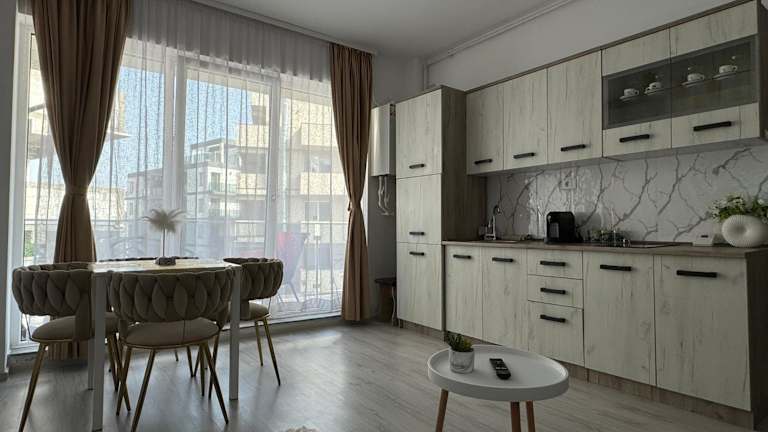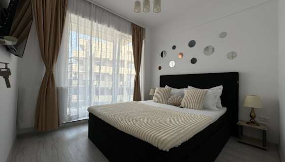 Die Unterkunft befindet sich in Năvodari, in der Nähe von Strand Mamaia, lediglich 500 m entfernt. Weitere Sehenswürdigkeiten sind die Marina Regia (600 m) sowie der Siutghiol-See (4,6 km). Das Einkaufszentrum City Park Mall ist 10 km und der Ovidiu-Platz 15 km von der Ferienwohnung entfernt. Der nächstgelegene Flughafen ist der Flughafen Mihail Kogălniceanu, 21 km entfernt.