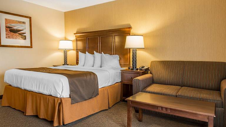 Die geräumigen Nichtraucherzimmer im Black Swan Inn, Ascend Hotel Collection bieten allen Komfort, den Sie für einen angenehmen Aufenthalt benötigen. Jedes Zimmer ist mit einem Kühlschrank, einer Kaffeemaschine von Keurig, einem Haartrockner, einem Bügeleisen, einem Bügelbrett, einem Schreibtisch und Kabel-TV ausgestattet. Einige Zimmer verfügen über einen Balkon und eine Whirlpool-Badewanne, um Ihnen zusätzliche Entspannung zu bieten. Kostenloses Highspeed-WLAN und kostenlose Ortsgespräche stehen Ihnen ebenfalls zur Verfügung.