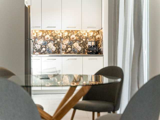 Das Apartment bietet eine voll ausgestattete Küche, in der die Gäste ihre eigenen Mahlzeiten zubereiten können. Alternativ gibt es in der Umgebung verschiedene Restaurants und Cafés, in denen Sie lokale Köstlichkeiten genießen können.