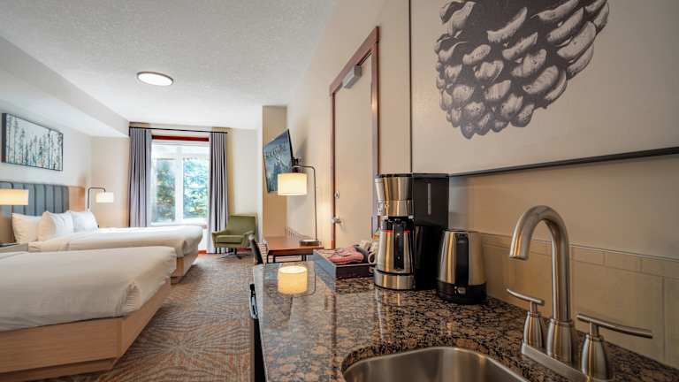 Das Hotel Blackstone Mountain Lodge in Canmore bietet eine gelungene Kombination aus modernem Schick und der wilden Schönheit der Rocky Mountains. Genießen Sie den Außenpool, das Fitnesscenter und die kostenfreie WLAN-Verbindung in allen Zimmern. Das Stadtzentrum von Canmore erreichen Sie in nur 4 Fahrminuten. Die Zimmer sind klimatisiert und verfügen über Kabel-TV. Einige Zimmer bieten zudem eine voll ausgestattete Küche. Entspannen Sie im Whirlpool oder nutzen Sie den Grillplatz auf der Terrasse des Hotels. Kostenlose Parkplätze und Konferenzeinrichtungen stehen ebenfalls zur Verfügung. Das Canmore Museum & Geoscience Centre erreichen Sie nach nur 2 km.