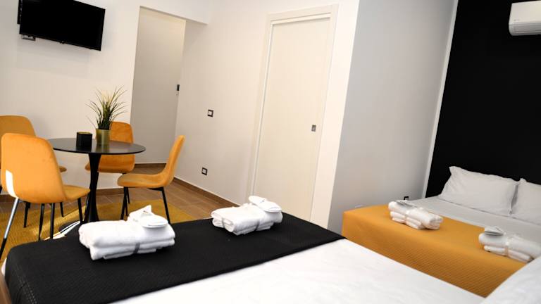 Die Wohneinheiten verfügen über Klimaanlage, Flachbild-TV mit Satellitenkanälen, Kaffeemaschine, Bidet, kostenlose Pflegeprodukte, Schreibtisch, eigenes Badezimmer mit Dusche und Haartrockner. Kostenloses WLAN ist vorhanden, und einige Zimmer sind mit einer Terrasse ausgestattet. Bettwäsche und Handtücher sind ebenfalls in der Unterkunft verfügbar.