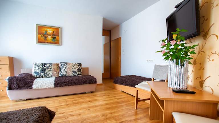 Die Zimmer im Hotel Blanka sind komfortabel und gemütlich eingerichtet. Jedes Zimmer verfügt über einen Kleiderschrank, einen Flachbild-TV und ein eigenes Bad. Einige Zimmer bieten zudem einen Balkon und alle Zimmer sind mit einem Wasserkocher und einem Kühlschrank ausgestattet. Hier können Sie sich wie zu Hause fühlen und Ihren Aufenthalt genießen.