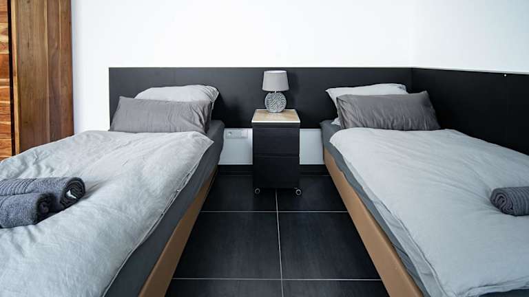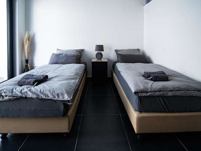 Das Apartment ist mit zwei Schlafzimmern ausgestattet, einer Küche mit Kühlschrank und Geschirrspüler, einem Flachbild-TV und einem Sitzbereich. Es gibt ein Badezimmer mit Dusche. Handtücher und Bettwäsche werden zur Verfügung gestellt.