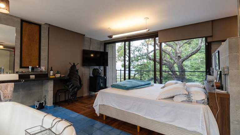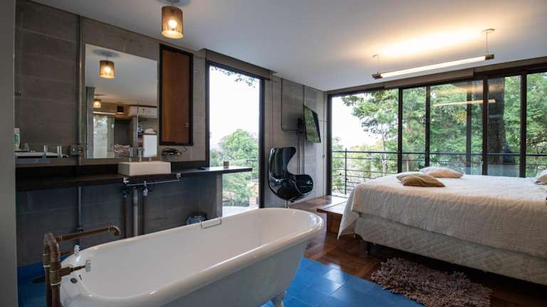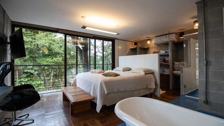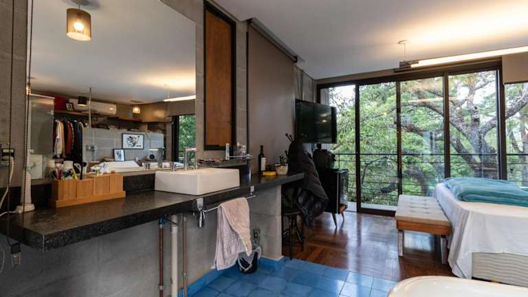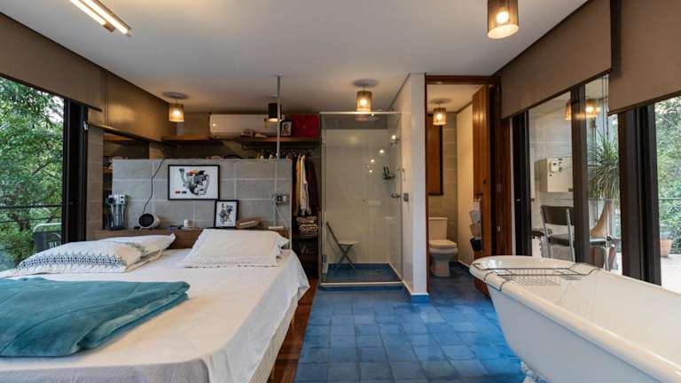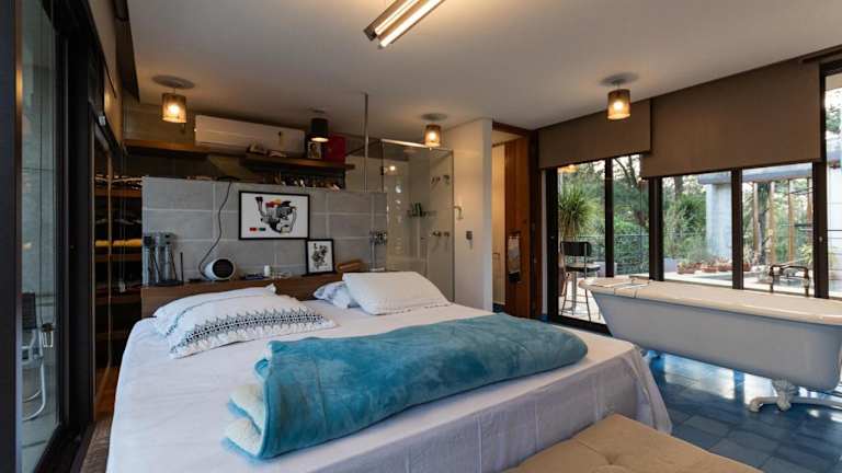 Blaze s SkateHouse Eco-spa e Refugio- Atibaia, SP bietet Übernachtungsmöglichkeiten in einem Ferienhaus, das mit einem Balkon, einem Garten und einem Außenpool ausgestattet ist. Es handelt sich um eine Unterkunft, die zusätzlich über einen eigenen Pool und kostenloses WLAN verfügt.