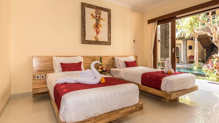 Das Bliss Ubud Abangan ist eine wunderbare Unterkunft in Ubud, die Ihnen einen erholsamen und angenehmen Aufenthalt bietet. Genießen Sie den Blick auf den Garten, den Außenpool und die verschiedenen Annehmlichkeiten, die das Hotel zu bieten hat. Das kontinentale Frühstück oder das Frühstück à la carte sorgt für einen guten Start in den Tag. Nutzen Sie auch die Fahrrad- und Autovermietung, um die Umgebung zu erkunden. Beliebte Sehenswürdigkeiten wie der Saraswati-Tempel, das Blanco-Museum und der Ubud-Palast befinden sich in der Nähe. Lassen Sie sich von einem kostenpflichtigen Flughafentransfer zum Flughafen Denpasar verwöhnen.