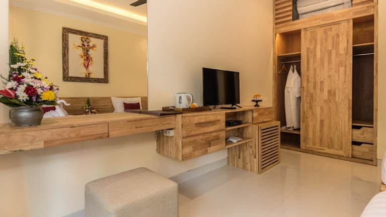 Die klimatisierten Wohneinheiten im Bliss Ubud Abangan bieten Ihnen Komfort und Entspannung. Jede Einheit verfügt über eine eigene Patio / Veranda, auf der Sie den Blick auf den Garten genießen können. Zur Ausstattung gehören auch ein Flachbild-TV, eine Minibar und ein Wasserkocher. Das private Badezimmer ist mit einer Dusche und Bademänteln ausgestattet. Kostenloses WLAN steht Ihnen in allen Bereichen der Unterkunft zur Verfügung.
