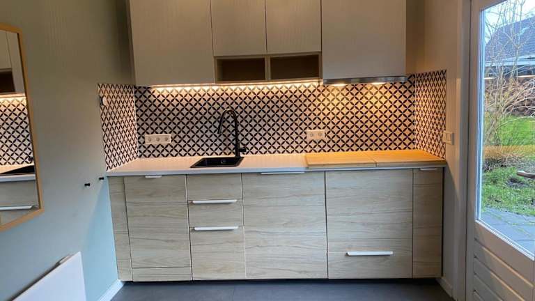 Die Ferienwohnung verfügt über ein Schlafzimmer, eine Küche mit Kühlschrank und Geschirrspüler, einen Flachbild-TV, einen Sitzbereich und ein Badezimmer mit Dusche. Handtücher und Bettwäsche werden bereitgestellt. Die Unterkunft bietet auch eine Nichtraucherumgebung.
