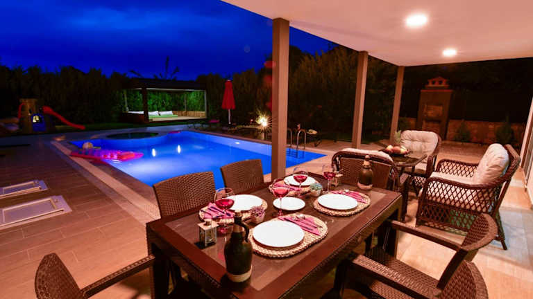 Die Unterkunft befindet sich in Ölüdeniz, 10 km entfernt von den Yachthäfen Fethiye und Ece Saray. Kelebekler Vadisi liegt 15 km von der Villa entfernt, Geisterstadt Kayaköy liegt in einer Entfernung von 5,6 km. Der Flughafen Dalaman ist 62 km entfernt, ein kostenpflichtiger Flughafentransfer wird angeboten.