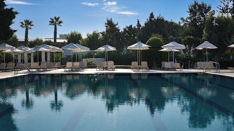 Direkt am Strand von Ialyssos an der wunderschönen Westküste von Rhodos gelegen, lädt das Blue Bay Resort Sie ein, zu entspannen, zu entdecken und zu genießen. Unsere Anlage besteht aus einem Haupthaus, einem Gartenflügel und charmanten Bungalows, die von üppigem Grün umgeben sind und nur wenige Schritte vom kristallklaren Ägäischen Meer entfernt liegen. Gäste können sich an unseren Pools erholen, in unseren Restaurants speisen oder an einer Vielzahl von Sport- und Freizeitaktivitäten für jedes Alter teilnehmen. Ob Sie Familienfreude, romantische Sonnenuntergänge oder einfach nur eine erholsame Auszeit am Strand suchen – das Blue Bay Resort bietet den perfekten Rahmen, um unvergessliche Urlaubserinnerungen zu schaffen.