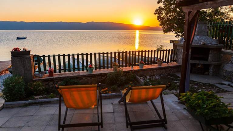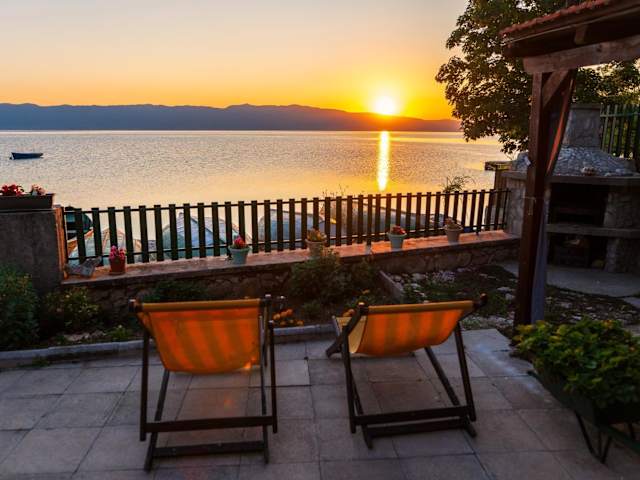 Das Blue Bay Guest House in Ohrid ist ein charmantes Hotel direkt am Ufer des Ohridsees gelegen. Die Apartments bieten kostenfreies WLAN und einen Balkon mit atemberaubendem Panoramablick auf den See. In der Nähe finden Sie ein Lebensmittelgeschäft und ein Restaurant. Die Zimmer verfügen über eine voll ausgestattete Küchenzeile und ein eigenes Bad. Der Garten lädt zum Entspannen ein und Angeln ist direkt an der Unterkunft möglich. Erkunden Sie die Umgebung und besuchen Sie den Nationalpark Galichitsa oder die St. Zuan-Höhlenkirche. Das Kloster St. Naum ist ebenfalls einen Besuch wert und nur eine 30-minütige Autofahrt entfernt.