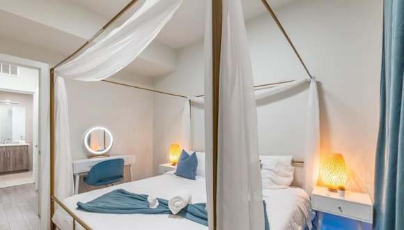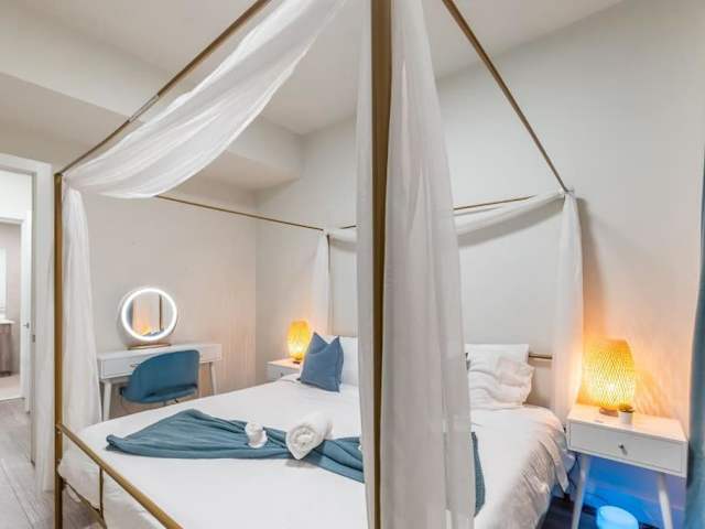 Die Ferienwohnung umfasst zwei Schlafzimmer sowie einen Wohnbereich. Die voll ausgestattete Küche bietet einen Kühlschrank und eine Kaffeemaschine. Es gibt zudem zwei Badezimmer mit Dusche und kostenlosen Pflegeprodukten.