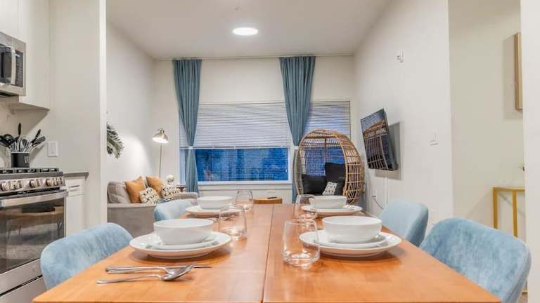 Die Ferienwohnung Blue Breakaway bietet Platz für bis zu 9 Personen und verfügt über Annehmlichkeiten wie kostenloses WLAN und einen Flachbild-TV. Es sind 2 Schlafzimmer, ein Wohnzimmer und eine voll ausgestattete Küche vorhanden, die mit einem Kühlschrank und einer Kaffeemaschine ausgestattet ist. Für die Hygiene stehen 2 Badezimmer mit einer Dusche und kostenlosen Pflegeprodukten zur Verfügung. Handtücher und Bettwäsche werden bereitgestellt. Die Unterkunft ist klimatisiert und bietet auch einen Fitnessraum.