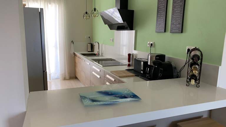 Die Ferienwohnung verfügt über 2 Schlafzimmer, ein Wohnzimmer und eine voll ausgestattete Küche mit Kühlschrank und Kaffeemaschine. Das Badezimmer ist mit einer Dusche und kostenlosen Pflegeprodukten ausgestattet. Handtücher und Bettwäsche werden bereitgestellt. Ein Balkon mit Meerblick ergänzt das Angebot.