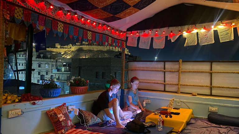 Blue Eye Hostel befindet sich weniger als 700 m von der Festung von Jaisalmer und 500 m von Haveli Salim Singh Ki entfernt. Die Umgebung bietet Sehenswürdigkeiten wie Patwon Ki Haveli, die 900 m entfernt ist, sowie den Lake Gadisar, der 1,1 km entfernt liegt. Der nächstgelegene Flughafen, der Flughafen Jaisalmer, befindet sich in 4 km Entfernung. Es wird ein kostenpflichtiger Flughafentransfer angeboten.