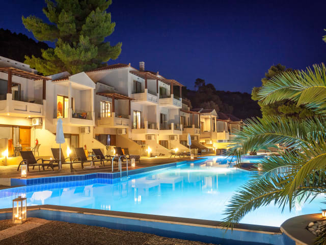 An einem der zauberhaftesten Punkte der Insel Skopelos, der von Bäumen umrandeten Bucht von Parnomos, und 12-16 Kilometer südwestlich von Skopelos Stadt (die von den Einheimischen auch Chora genannt wird), haben wir das Blue Green Bay bauen lassen. Der Komplex liegt in der ruhigen Umarmung der Bucht, an der Blauen Flagge ausgezeichneten Strand und ist eine wahre Oase der Entspannung, Komfort und Genuss des Meeres.