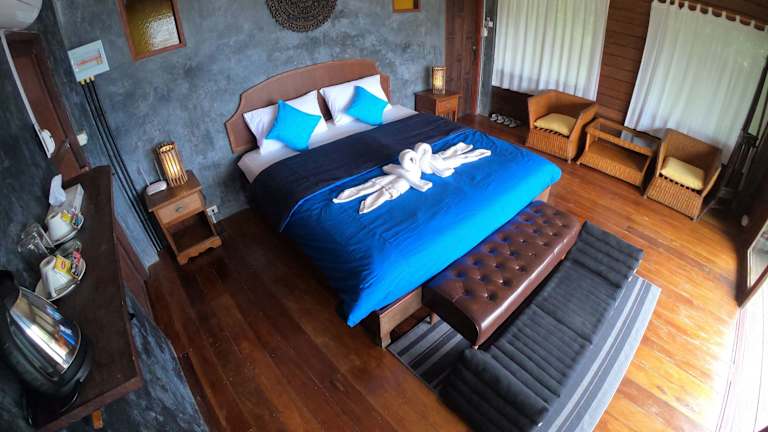 Die Zimmer im Blue Heaven Resort Koh Tao sind gemütlich und komfortabel eingerichtet. Jedes Zimmer verfügt über ein eigenes Bad und eine Klimaanlage. Einige Zimmer bieten auch einen separaten Sitzbereich. Für zusätzlichen Komfort gibt es einen Wasserkocher in jedem Zimmer. Einige Zimmer haben Zugang zu einem Gemeinschaftsbad mit einem Bidet.