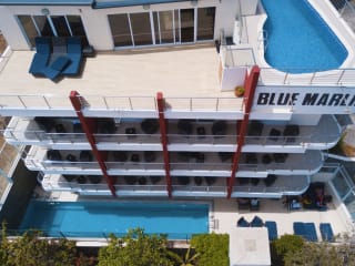 Very nice new hotel opened on March 13, 2018, with 4 stars, an exceptional view on the Bay of Mindelo, on the marina, on the city. 21 fully equipped rooms with balcony (3 for handicapped persons) + one 3-bedroom apartment (1 for handicapped person) with a very large terrace and a private pool + a 50-seat restaurant with a 13-meter pool, a bar specializing in cocktails , an elevator delivering all floors. Each room has a different original painting, usually blue marlin. Reception 24/24, large buffet each morning, room service, exceptionally friendly staff. The two heated pools in winter. Hairdresser, body care, massage. Gym, WIFI free throughout the hotel. Very good restaurant, chef Marcio De Oliveira Rodrigues, Portuguese, French cuisine and of course Capverdienne. Open from 07:00 to 23:00.