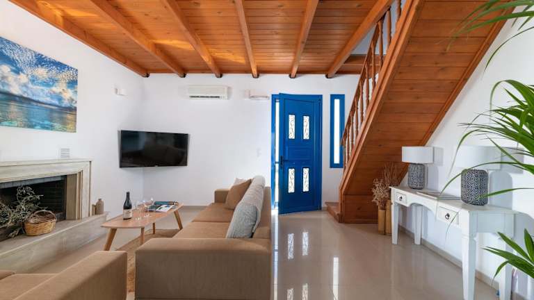 Die Villa umfasst drei Schlafzimmer, ein Wohnzimmer und eine voll ausgestattete Küche mit Kühlschrank und Kaffeemaschine. Es gibt zwei Badezimmer, die mit einer Dusche und einem Haartrockner ausgestattet sind. Handtücher und Bettwäsche werden bereitgestellt. Schallisolierte Zimmer und Terrassenmöbel sind ebenfalls vorhanden.