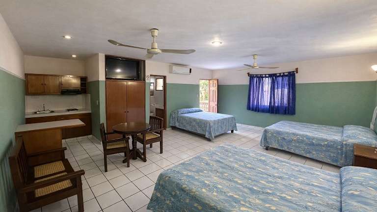 Die Zimmer der Blue Pacific Suites sind mit einem Kleiderschrank, einem eigenen Badezimmer mit Dusche, einem Flachbild-TV und Klimaanlage ausgestattet. Einige Zimmer verfügen über einen Balkon. Eine Minibar ist ebenfalls in den Gästezimmern vorhanden. Tägliche Reinigung wird angeboten.