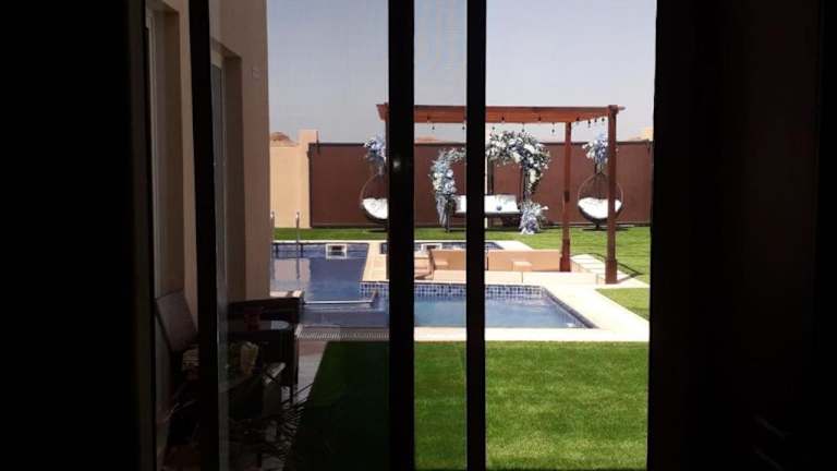 Das Blue Revan Chalet in Salalah bietet Ihnen eine luxuriöse Unterkunft mit atemberaubendem Bergblick. Entspannen Sie sich in diesem Chalet mit eigenem Pool und Garten und genießen Sie die Ruhe und Privatsphäre. Die voll ausgestattete Küche und die zahlreichen Badezimmer sorgen für einen komfortablen Aufenthalt. Lassen Sie sich im Wellnessbereich mit Innenpool und Whirlpool verwöhnen. Die Lage des Chalets ermöglicht es Ihnen, die beeindruckende Sultan-Qabus-Moschee und das faszinierende Wadi Ain Sahalnoot zu besuchen. Der Flughafen Salalah ist ebenfalls gut erreichbar.