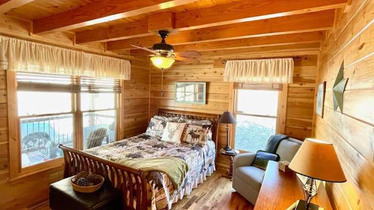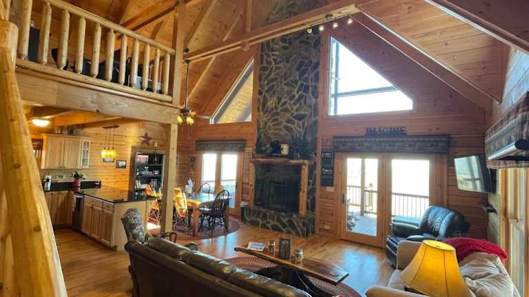 Das Blue Ridge Parkway Panoramic Paradise-60 Mile View verfügt über 4 Schlafzimmer, die Platz für eine große Familie oder eine Gruppe von Freunden bieten. Die voll ausgestattete Küche mit Kühlschrank und Geschirrspüler ermöglicht es Ihnen, Ihre eigenen Mahlzeiten zuzubereiten. Der Flachbild-TV und der gemütliche Sitzbereich laden zum Entspannen ein. Das Ferienhaus verfügt außerdem über 3 Badezimmer mit Dusche. Handtücher und Bettwäsche werden gestellt, um Ihren Aufenthalt so angenehm wie möglich zu gestalten.