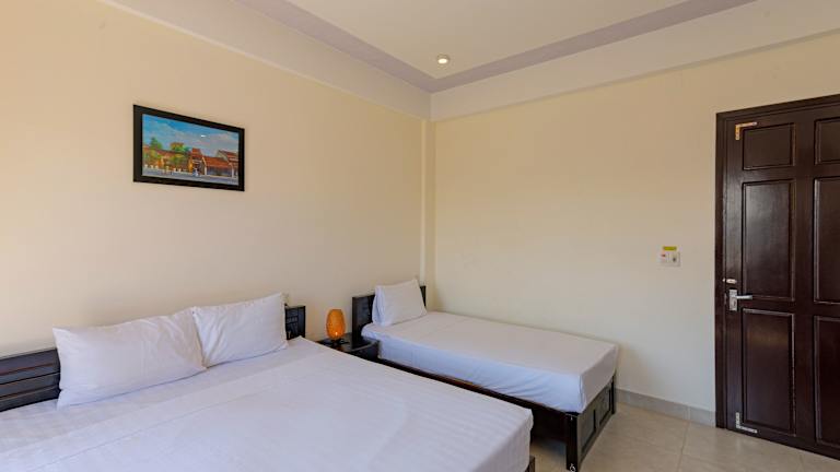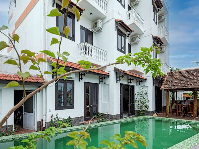 Das Hoi An Blue River Hotel in Hoi An bietet seinen Gästen einen angenehmen Aufenthalt mit einer Vielzahl von Annehmlichkeiten. Genießen Sie den Blick auf den Garten, entspannen Sie in der Gemeinschaftslounge oder auf der Terrasse und gönnen Sie sich einen Drink an der Bar oder im Casino. Das kostenfreie WLAN ist in allen Bereichen der Unterkunft verfügbar. Die klimatisierten Zimmer verfügen über einen Balkon, einen Flachbild-TV und ein eigenes Badezimmer mit kostenfreien Pflegeprodukten. Ein Kühlschrank, eine Minibar und ein Wasserkocher sind ebenfalls vorhanden. Starten Sie jeden Morgen mit einem köstlichen veganen Frühstück, das in der Unterkunft serviert wird. Entspannen Sie am Außenpool oder lassen Sie Ihre Kinder auf dem Kinderspielplatz spielen. In der Nähe gibt es auch die Möglichkeit zum Radfahren. Beliebte Sehenswürdigkeiten wie die Versammlungshalle der chinesischen Kongregation aus Chaozhou, das Historische Museum von Hoi An und die überdachte Japanische Brücke befinden sich in der Nähe. Der internationale Flughafen Da Nang ist nur 31 km entfernt und die Unterkunft bietet einen kostenpflichtigen Flughafentransfer.