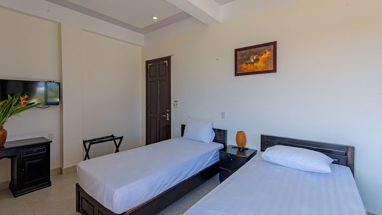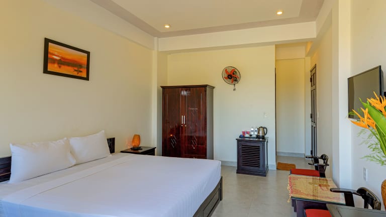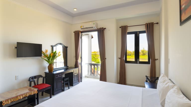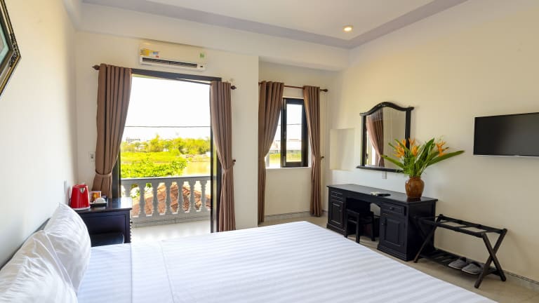 Die klimatisierten Zimmer im Hoi An Blue River Hotel sind komfortabel und stilvoll eingerichtet. Jedes Zimmer verfügt über einen Balkon, von dem aus Sie einen herrlichen Blick auf den Garten genießen können. Entspannen Sie sich vor dem Flachbild-TV oder nutzen Sie die Annehmlichkeiten wie den Kühlschrank, die Minibar und den Wasserkocher. Das private Badezimmer bietet kostenfreie Pflegeprodukte und ein Bidet für zusätzlichen Komfort. WLAN steht Ihnen in allen Bereichen der Unterkunft kostenfrei zur Verfügung.