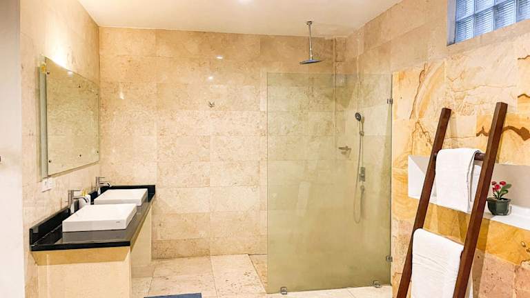 Die Blue Salt Villa verfügt über 4 klimatisierte Schlafzimmer, ein geräumiges Wohnzimmer und eine voll ausgestattete Küche mit Kühlschrank und Wasserkocher. Jedes der 4 Badezimmer ist mit einer Dusche und kostenlosen Pflegeprodukten ausgestattet. Handtücher und Bettwäsche werden in der Villa zur Verfügung gestellt, so dass Sie sich um nichts kümmern müssen.