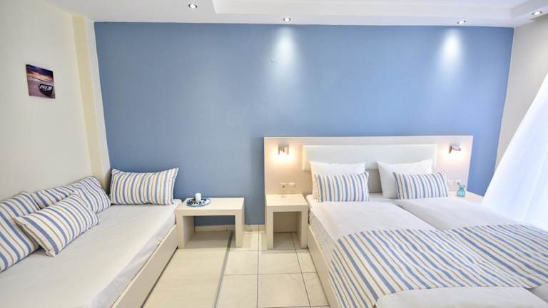 Die Zimmer im Blue Senses Hotel verfügen über einen Balkon, der einen herrlichen Blick auf die Umgebung bietet. Jedes Zimmer ist mit einem Wasserkocher ausgestattet und einige Zimmer verfügen über eine Küchenzeile mit einem Kühlschrank und einem Kochfeld. Die Zimmer bieten auch ein eigenes Badezimmer mit Dusche.