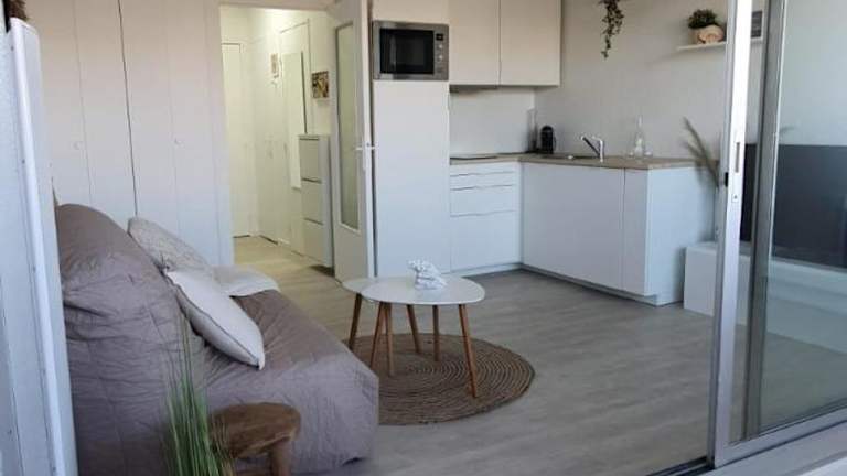 Blue Sky La Grande Motte Studio bietet Übernachtungsmöglichkeiten direkt am Strand, mit einem saisonalen Außenpool, einem Garten und einer Terrasse. Die Unterkunft wird privat geführt und ist für Gäste ab 18 Jahren zugänglich. Haustiere sind nicht gestattet, und es sind keine Feiern wie Junggesellenabschiede erlaubt.