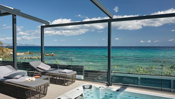 Die Unterkunft befindet sich in Alykanas auf Zakynthos, nur 30 m vom Strand Rasa entfernt. Der internationale Flughafen Zakynthos ist 16 km entfernt. In der Umgebung gibt es verschiedene Sehenswürdigkeiten wie die Kirche des Agios Dionysos (15 km) und das Byzantinische Museum (16 km).
