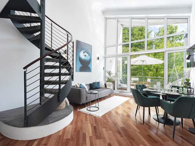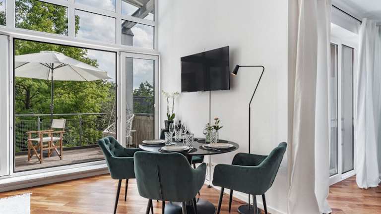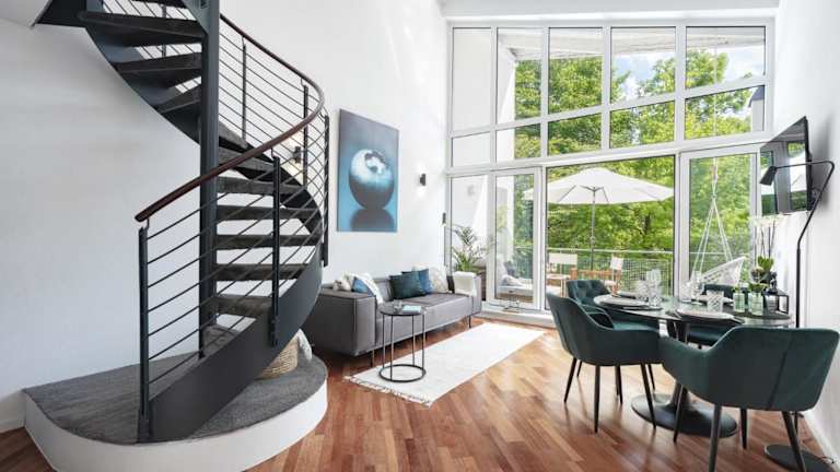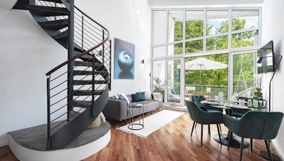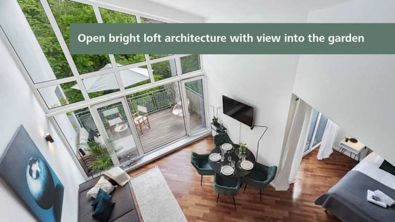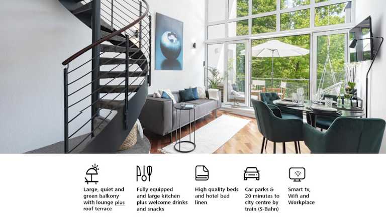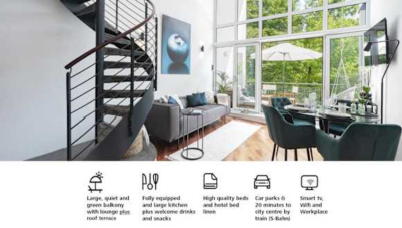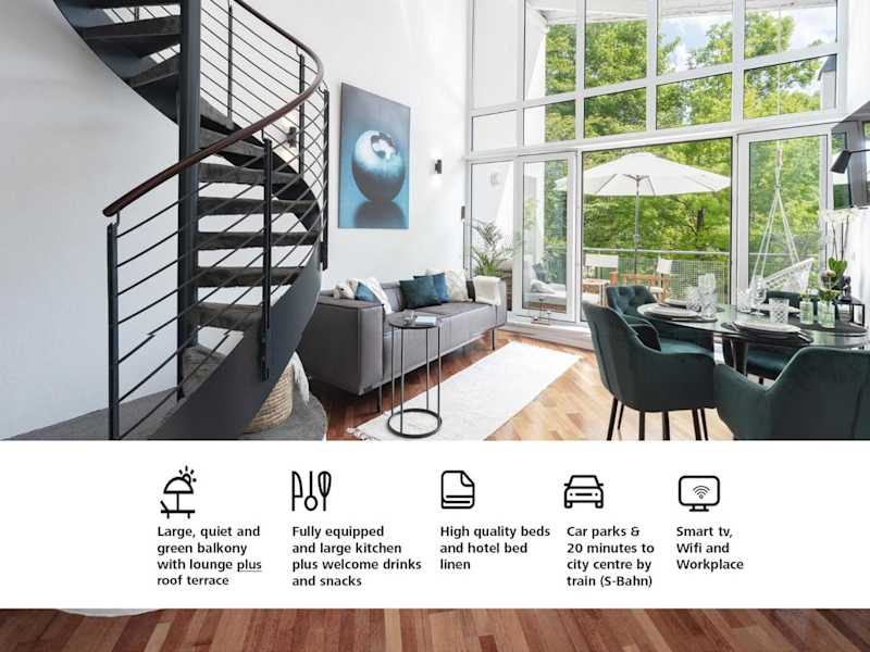 Blueberry Living - Design Loft nahe München - Dachterrasse - S-Bahn ist eine Unterkunft, die Übernachtungsmöglichkeiten in Form einer Ferienwohnung bietet. Sie verfügt über eine Veranda/Patio, kostenfreies WLAN und einen Balkon, der einen Blick auf den Garten ermöglicht.