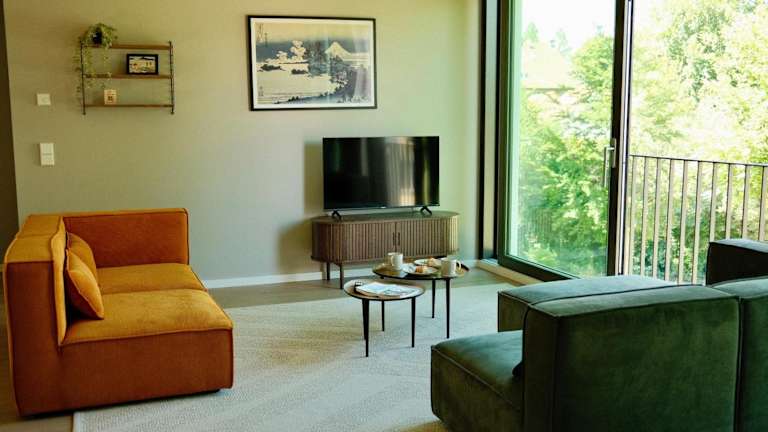 Die Apartments verfügen über eine gut ausgestattete Küche mit Kühlschrank, Geschirrspüler, Ofen, Herdplatte, Toaster, Kaffeemaschine und Wasserkocher.