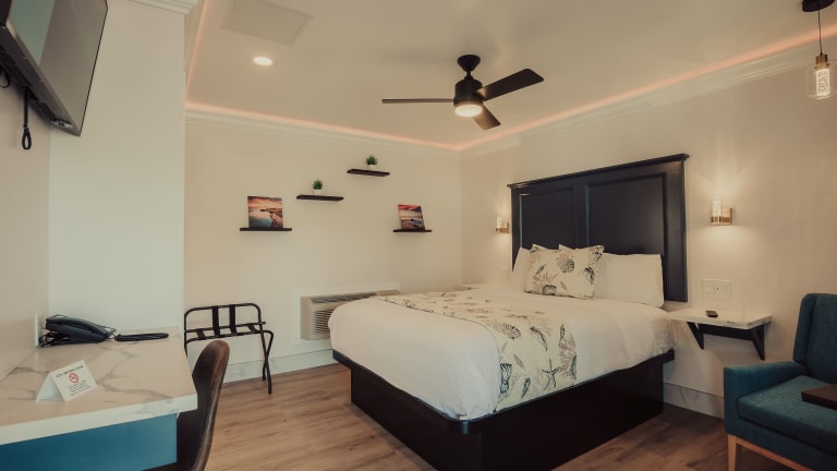 Die klimatisierten Zimmer im Blufftop Inn & Suites - Wharf/Restaurant District sind komfortabel und modern eingerichtet. Sie verfügen über einen Flachbild-Kabel-TV, einen Kühlschrank, eine Kaffeemaschine und einen Schreibtisch. Das private Badezimmer ist mit einer Dusche, kostenfreien Pflegeprodukten und einem Haartrockner ausgestattet. Kostenfreies WLAN und Bettwäsche sind ebenfalls vorhanden.