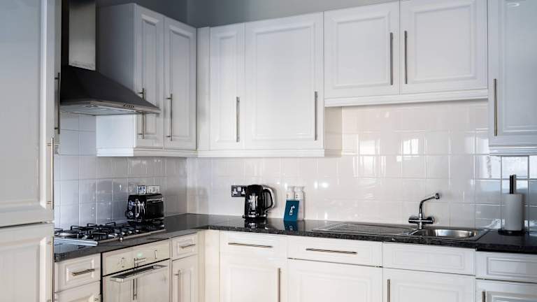 Gäste können ein kontinentales Frühstück genießen. Die Unterkunft ist mit einer voll ausgestatteten Küche ausgestattet, die einen Kühlschrank, Geschirrspüler und Ofen umfasst, und bietet auch eine Mikrowelle, Herdplatte, Toaster, Kaffeemaschine und Wasserkocher.