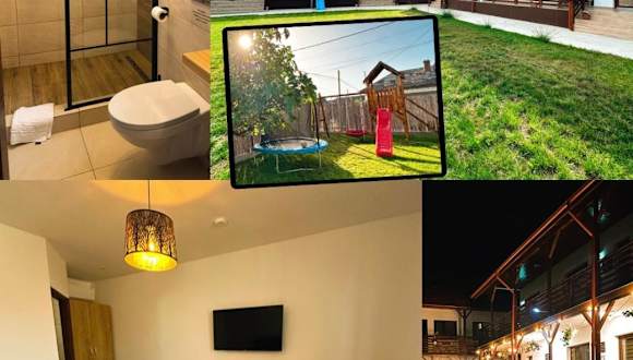 In der Bobocel Villa können Sie sich im Garten entspannen oder auf der Terrasse die Sonne genießen. Die Unterkunft bietet auch Privatparkplätze für Ihre Bequemlichkeit. In der Umgebung gibt es viele Möglichkeiten für Outdoor-Aktivitäten wie Wandern und Radfahren. Der Strand Sfantu Gheorghe ist ein beliebter Ort zum Schwimmen und Sonnenbaden.