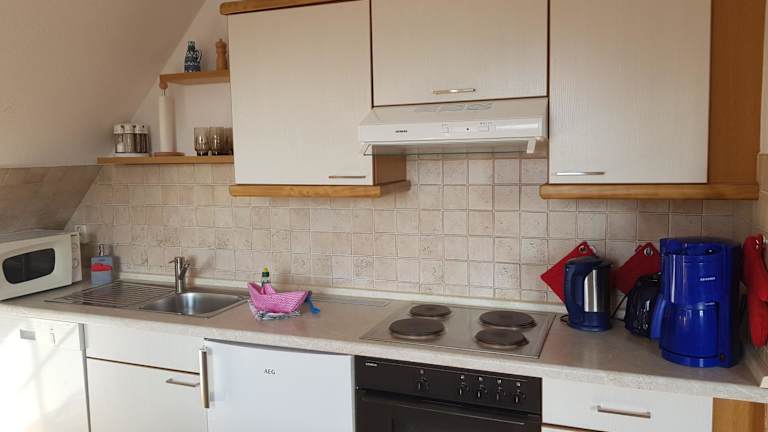 Die Ferienwohnung verfügt über ein Schlafzimmer, ein Wohnzimmer und ein Badezimmer mit Dusche. Zur Ausstattung gehören ein Flachbild-TV, eine gut ausgestattete Küche mit Kühlschrank und Geschirrspüler sowie die Möglichkeit, Handtücher und Bettwäsche gegen Aufpreis zu erhalten.