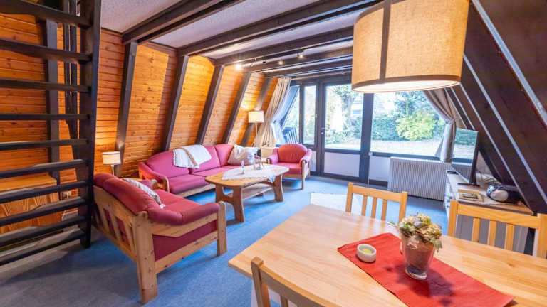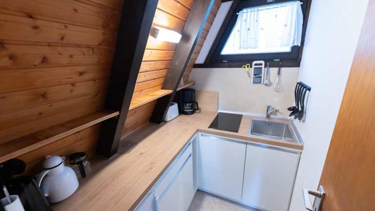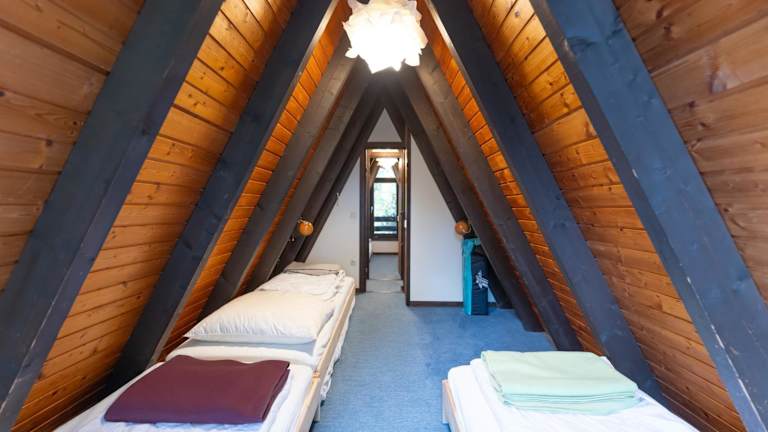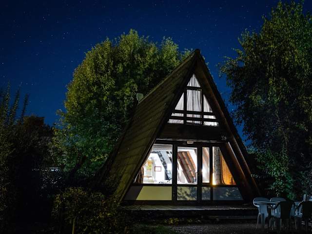 Die Unterkunft verfügt über ein Chalet mit zwei Schlafzimmern und einem Badezimmer. Zur Ausstattung gehören Bettwäsche, Handtücher, ein Flachbild-TV und ein Essbereich. Eine voll ausgestattete Küchenzeile ermöglicht die Selbstverpflegung, während eine Terrasse mit Gartenblick für Entspannung im Freien sorgt.