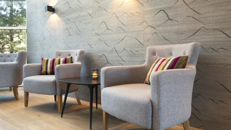 Im Restaurant des Hotels, das große Fenster mit Blick auf den Garten bietet, wird während des Monats Juli jeden Abend ein Sommerbuffet angeboten. Snacks sind ebenfalls erhältlich, und spezielle Ernährungsbedürfnisse können auf Anfrage berücksichtigt werden.