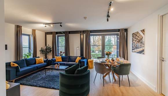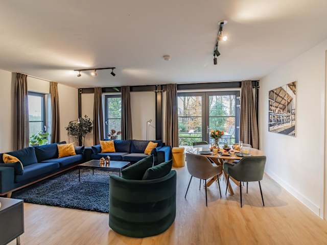 Die Ferienwohnung enthält zwei Schlafzimmer, ein Wohnzimmer und ein Badezimmer. Zur Ausstattung gehören zudem Handtücher, Bettwäsche, ein Flachbild-TV mit Satellitenempfang, ein Essbereich sowie eine voll ausgestattete Küche. Das Badezimmer ist mit einer Dusche und einer Badewanne ausgestattet.