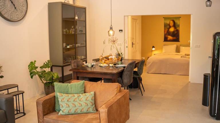 Die Unterkunft Boetiek SimonS Loft appartement centrum Brummen bietet eine Ferienwohnung in einem charmanten, historischen Gebäude. Die Anreise ist ab 15:00 Uhr möglich, und das Auschecken kann bis 11:00 Uhr erfolgen. Die Unterkunft beinhaltet verschiedene Annehmlichkeiten, darunter kostenloses WLAN, eine Terrasse sowie Nichtraucherzimmer. Es sind keine Feiern wie Junggesellenabschiede erlaubt, und Haustiere sind nicht gestattet.