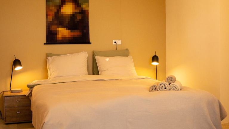 Die Ferienwohnung verfügt über 1 Schlafzimmer, ein Wohnzimmer und eine voll ausgestattete Küche mit Kühlschrank und Wasserkocher. Zudem gibt es 1 Badezimmer, das mit einer Dusche und einem Haartrockner ausgestattet ist. Handtücher und Bettwäsche werden zur Verfügung gestellt, und die Unterkunft ist klimatisiert. Es sind Familienzimmer vorhanden.